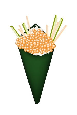 日本料理 おいしい緑トビコ寿司千切りキュウリと手巻き寿司寿司 いなりずしまたは手でニンジンのイラスト ロール寿司です のイラスト素材 ベクタ Image